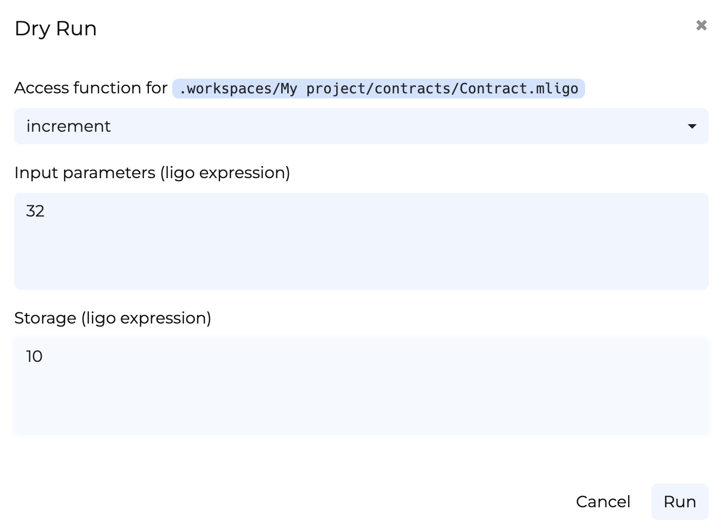 Test the contract by passing parameters and the storage value to the LIGO